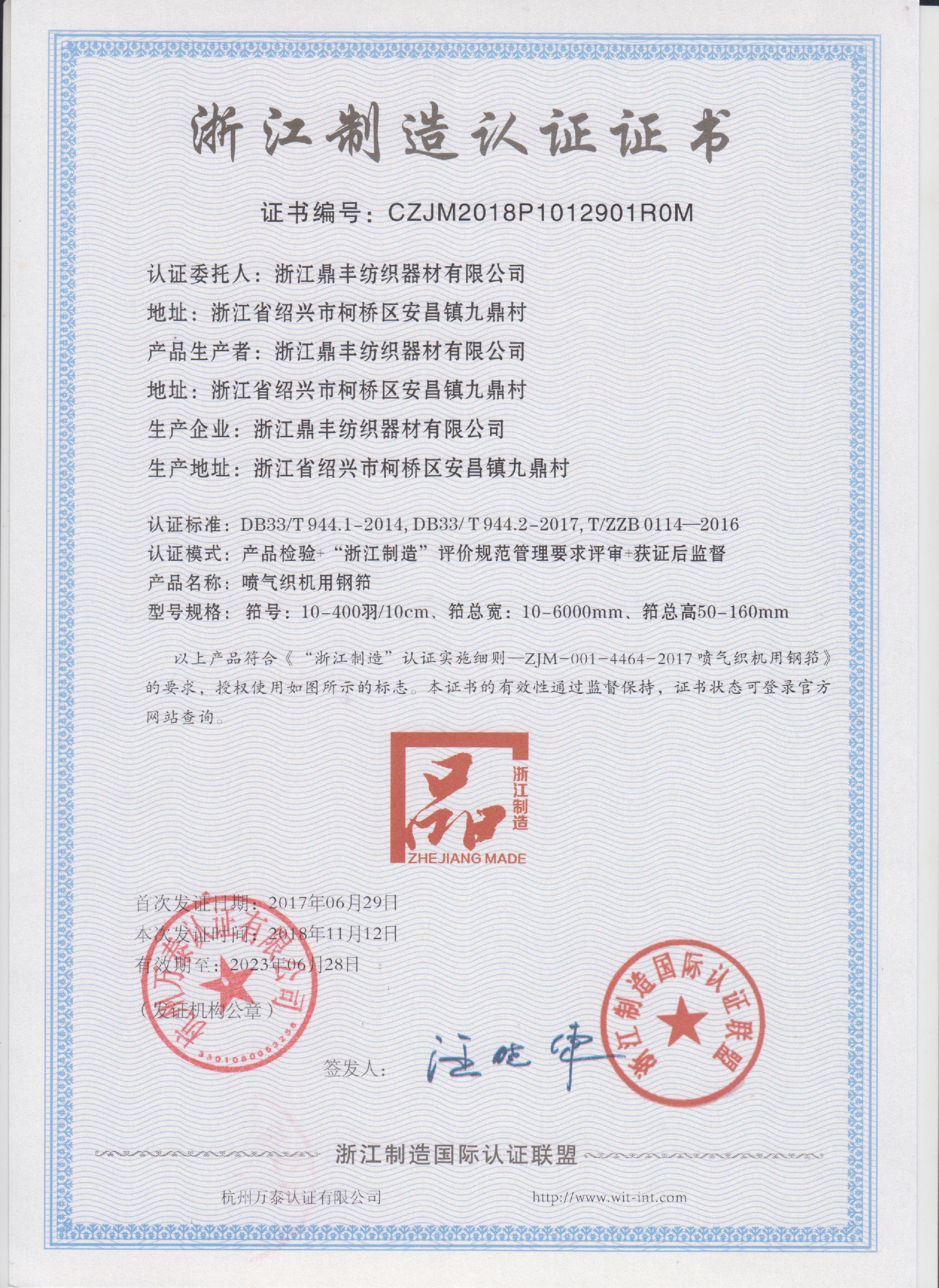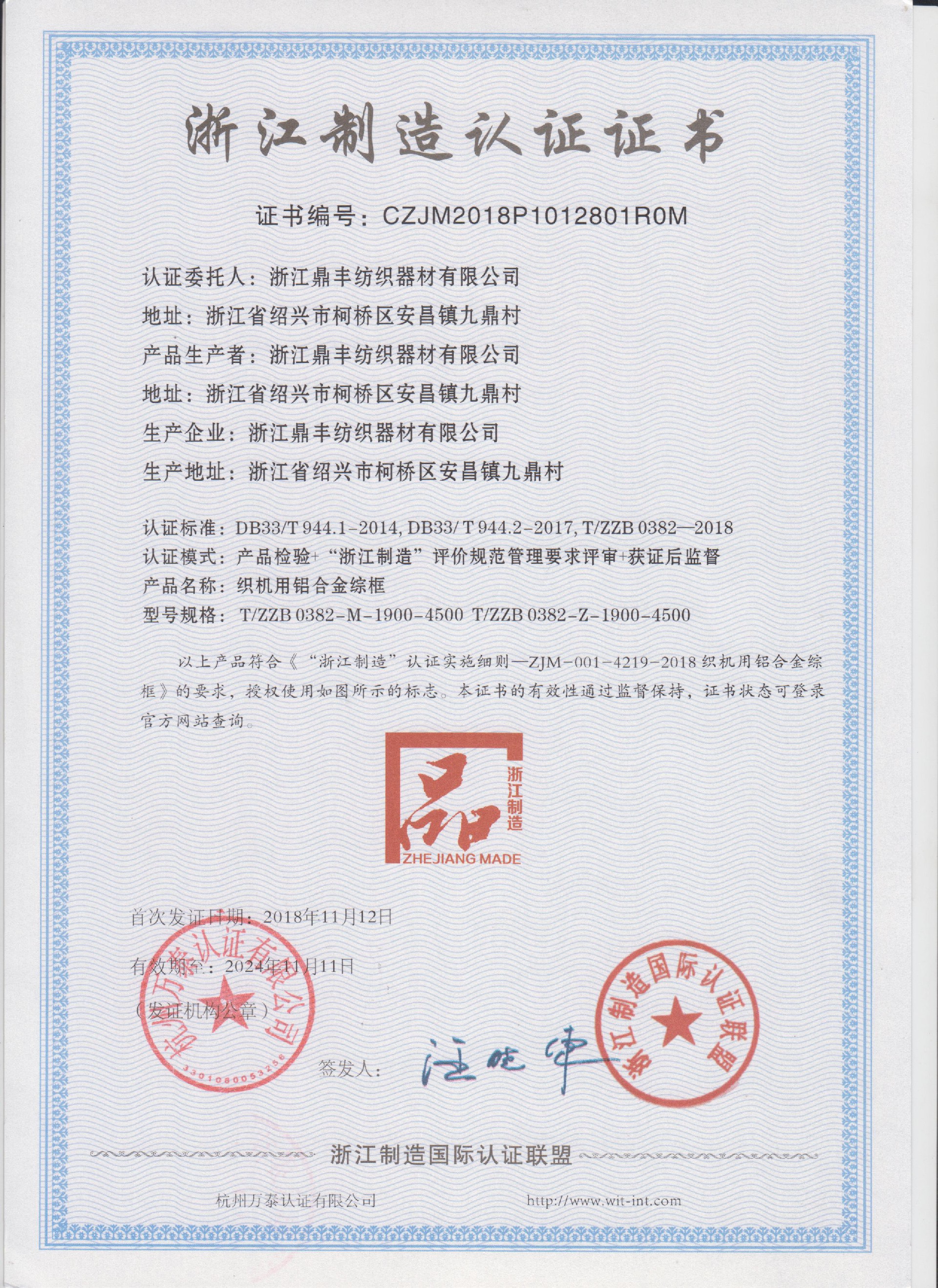 公司現(xiàn)有固定資產(chǎn)6000余萬元,員工300余人,現(xiàn)具有年產(chǎn)噴氣異型筘12萬米,劍桿筘32萬米,噴水筘5萬米,綜框20萬片,鋼片綜2億片,停經(jīng)片1.5億片, 織軸1.2萬套的生產(chǎn)能力。公司“越泉”商標(biāo)被評(píng)為“中國馳名商標(biāo)”。公司通過ISO9001 :2015國際質(zhì)量體系認(rèn)證,ISO14001:2015國際環(huán)境管理體系認(rèn)證,ISO45001:2018國際職業(yè)健康安全管理體系認(rèn)證,噴氣織機(jī)用鋼筘和織機(jī)用鋁合金綜框獲得“浙江制造”品牌認(rèn)證,公司擁有自營(yíng)進(jìn)出口權(quán),產(chǎn)品暢銷全國并遠(yuǎn)銷印度、巴基斯坦、土耳其、埃及、哥倫比亞、意大利等國家和地區(qū)。